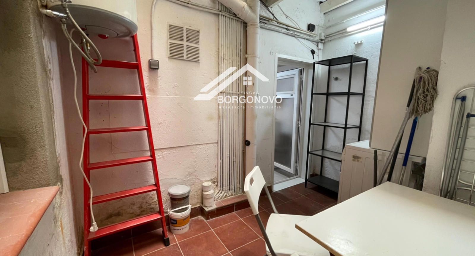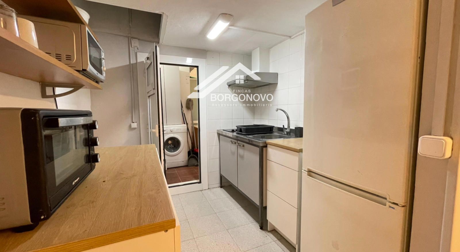 Tiene patio con lavadora y espacio para tender.